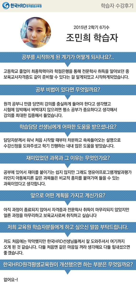 [조민희님] 고등학교 졸업이 최종학력이라 학점은행을 통해 전문학사 취득을...