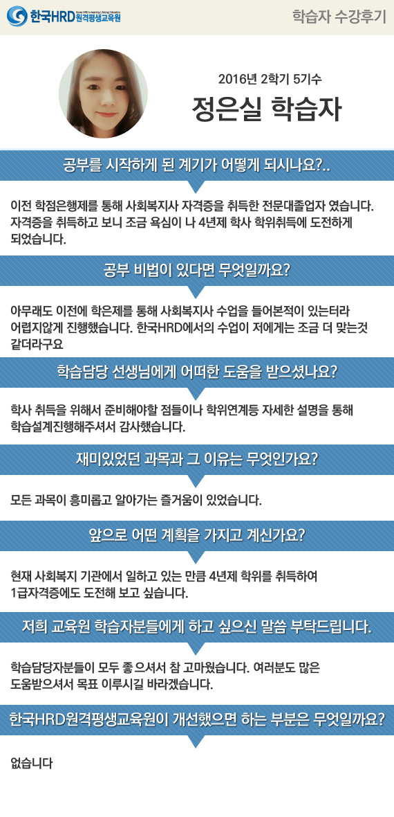 [정은실님] 이전 학점은행제를 통해 사회복지사 자격증을 취득한...
